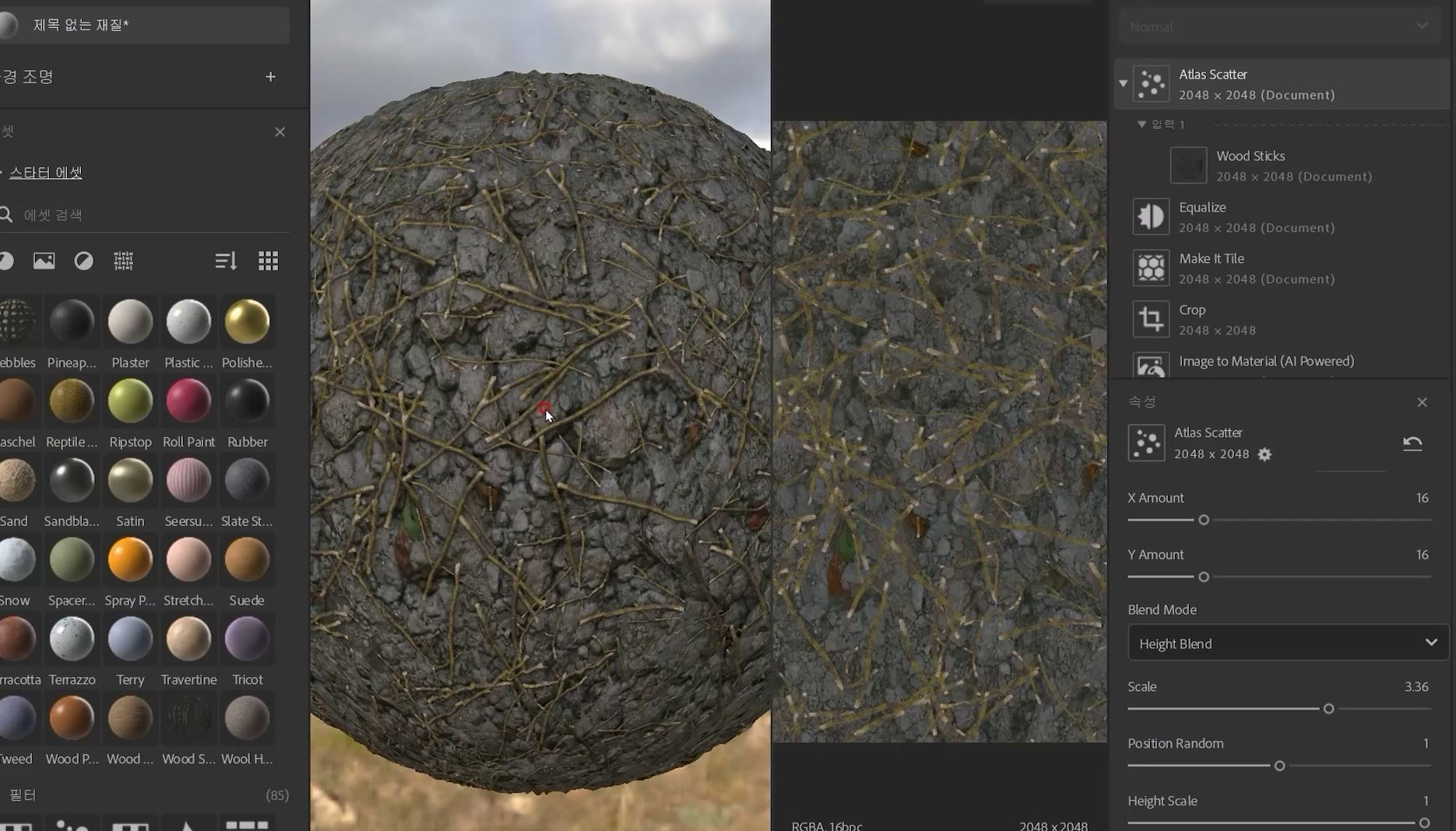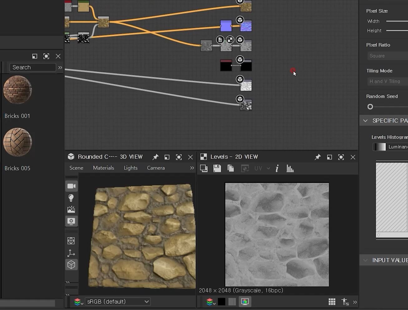 ⭕서브스턴스 디자이너로 30여개의 타일맵 제작 ⭕서브스턴스 3D Sampler를 이용한 텍스쳐 제작 ⭕가이아를 통한 지형제작 ⭕3D Sampler로 3D Scan 오브젝트 만들기 ⭕언리얼엔진에 적용 및 활용방법